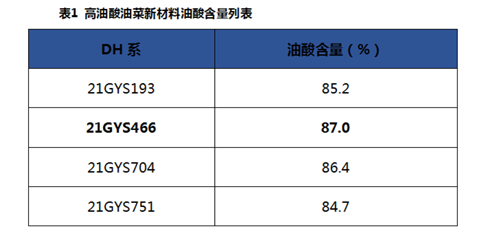 在中心分子设计育种团队与中科粮油(杭州)有限责任公司科研团队的联合攻关下,利用春性丰产亲本与高油酸品种中科2号杂交,小孢子培养,历经2年时间创制了3147份高油酸DH群体,从中筛选获得了油酸含量高达85-87%的超高油酸新材料,将我国油菜油酸含量提高到了一个新的高度,较橄榄油(油酸75%)提高了12个百分点,为利用油菜生产高油酸食用油奠定了良好的材料基础。