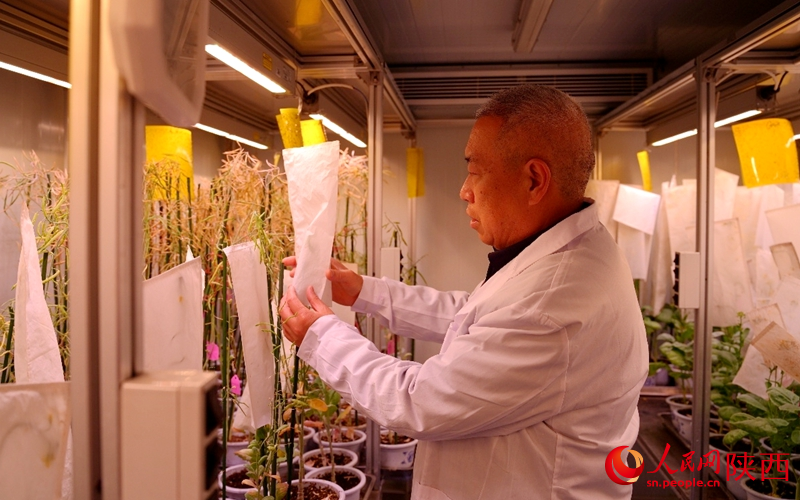 育种加代培养室内,董育红正在给培育的油菜套袋。人民网记者 邹星摄