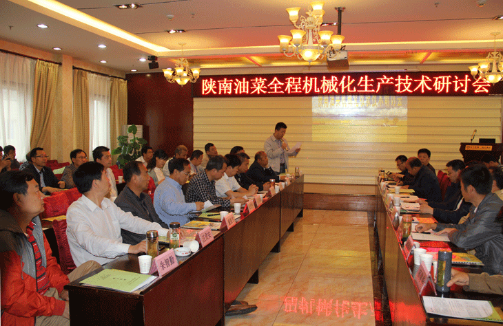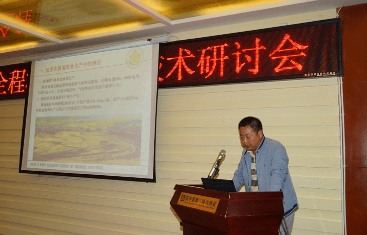 现场展示结束后,中心主任穆建新主持举行了技术研讨会。国家油菜产业技术体系岗位专家、华中农业大学工学院院长廖庆喜,陕西省油菜产业技术体系首席专家、陕西省农技中心副主任王阳峰,陕西省油菜产业技术体系油菜育种岗位专家、西北农林科技大学研究员董振生,中心高级农艺师杨建利等作了主题报告,来自农艺、农技、农机和种子企业的参会人员进行了交流探讨。