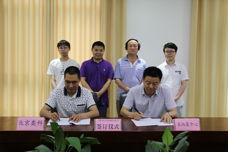 我中心主要从事油菜,以及小麦、大豆等农作物育种和相关技术研究,技术力量雄厚,成果储备丰富,研发平台完备。北京奥科目前是国内在DNA合成和测序领域提供商业服务的主要公司之一,主要致力于为广大的生物科学、医学机构及科研人员提供专业服务。两家联合建立基因检测技术研发平台,能有效整合现有资源,充分发挥各自优势,快速实现平台功能。中心可利用平台资源,弥补自身大型仪器设备不足,合作开展油菜分子技术研究,提升研发水平,加速科研创新,为油菜产业发展提供现代技术支撑。同时,立足杨凌农业高新技术产业示范区建立联合研发平台,有利于为杨凌乃至西北地区相关科研机构提供更为便捷高效的生物技术服务。